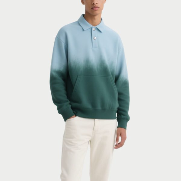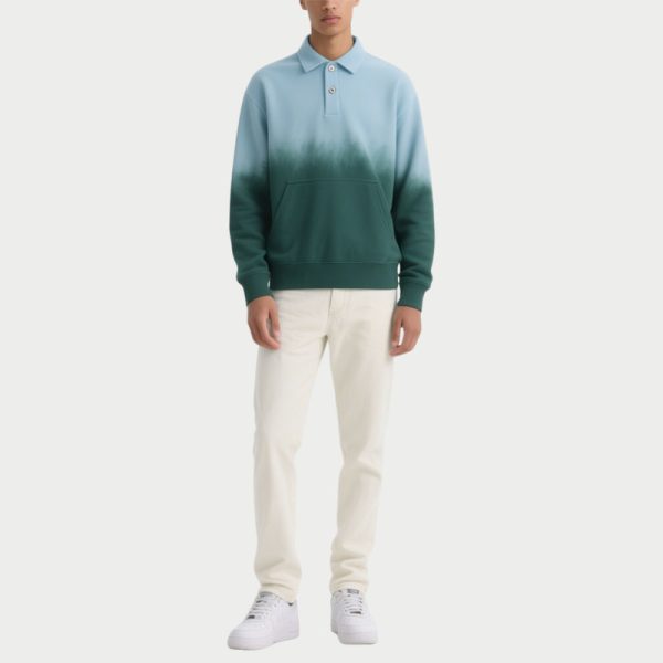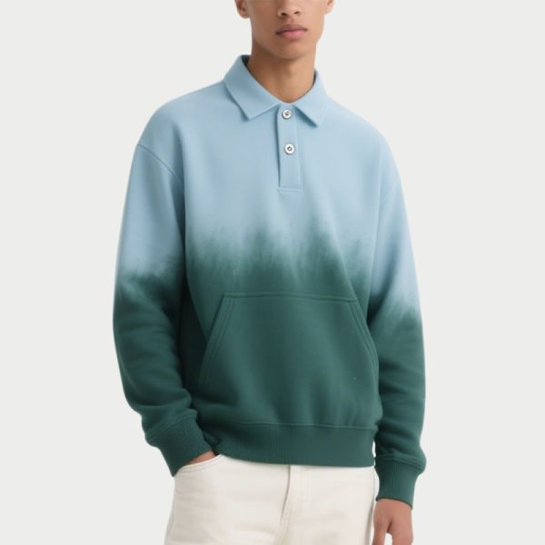 Men’s Ombre Polo Sweatshirt with Kangaroo Pocket Long Sleeve