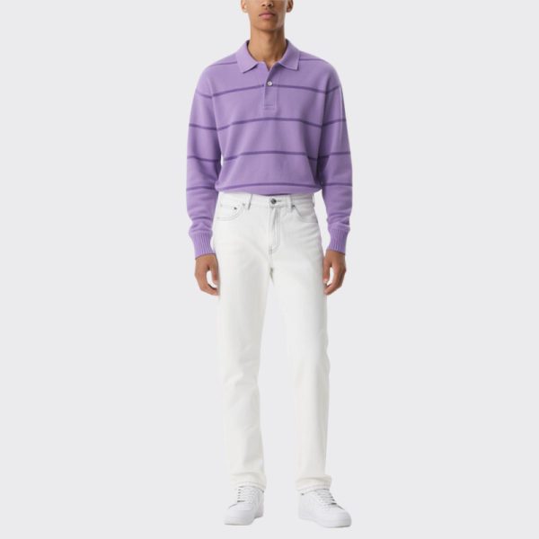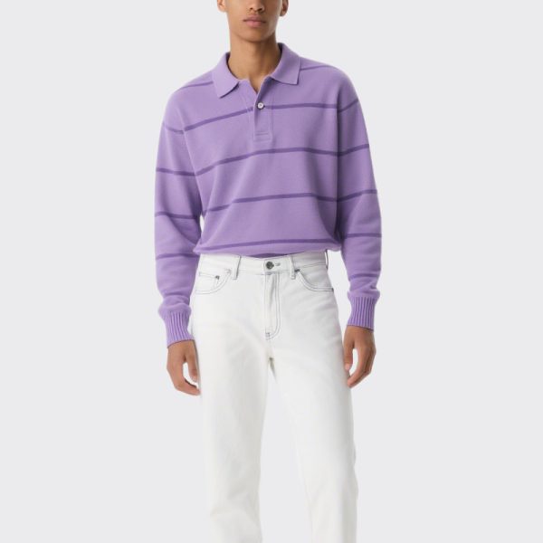 Men’s Purple Striped Long Sleeve Polo Button Up
