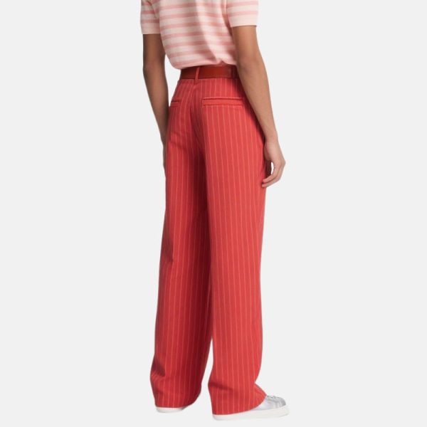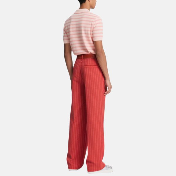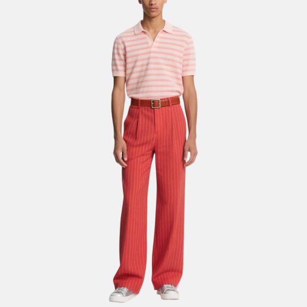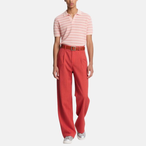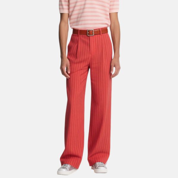 Men’s Red Wide Leg Pants Vertical Pattern Belt for Stylish Casual Outfits​​
