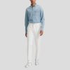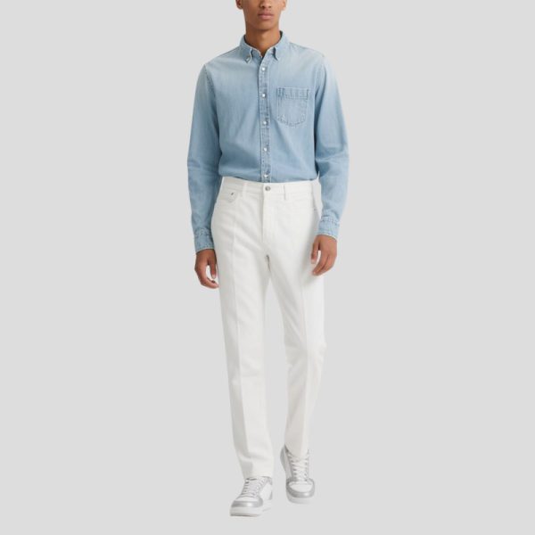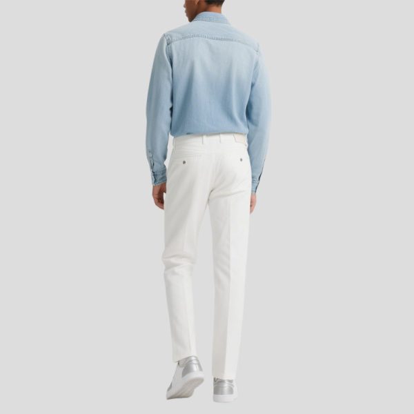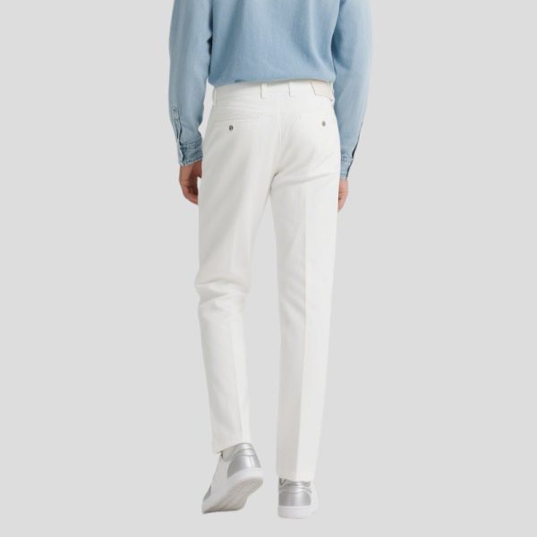 Men’s White Twill Silver Button Chinos Casual Pants Minimalist Versatile