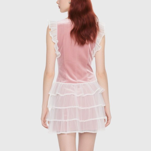 Playful Women’s Sleeveless Dress with Layered Mesh