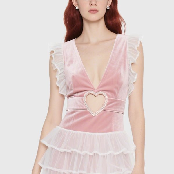 Utilizing dimensional tailoring, this dress conforms to the female form, accentuating the slender waist and graceful curves for a captivating look and a confident expression.