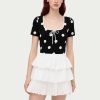 Polka Dot Lace-Up Retro Short-Sleeved Top for Women