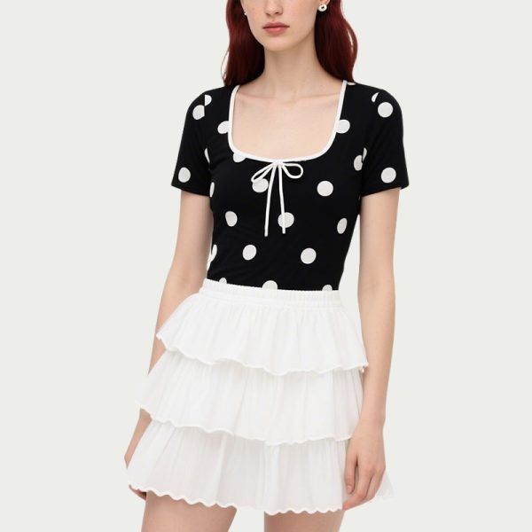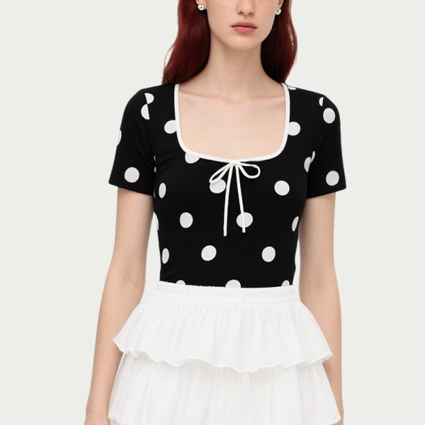Be the first to review “Polka Dot Lace-Up Retro Short-Sleeved Top for Women”