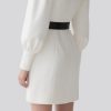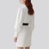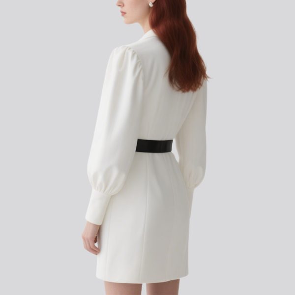 The dress hits just above the knee, revealing slender calves and visually lengthening the legs for a more elevated look.