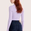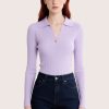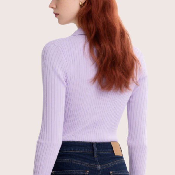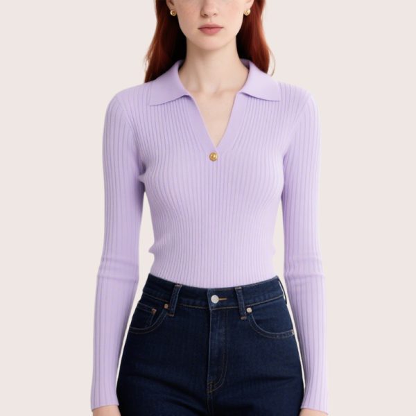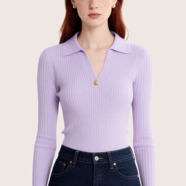 Simple Polo-Neck Ribbed Women’s Long-Sleeved Top