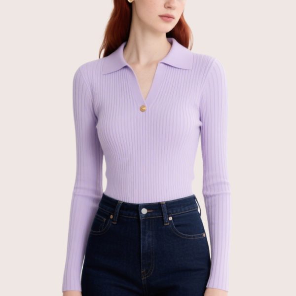 Be the first to review “Simple Polo-Neck Ribbed Women’s Long-Sleeved Top”