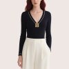 Slim-Fit V-Neck Long-Sleeved Top for Women
