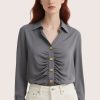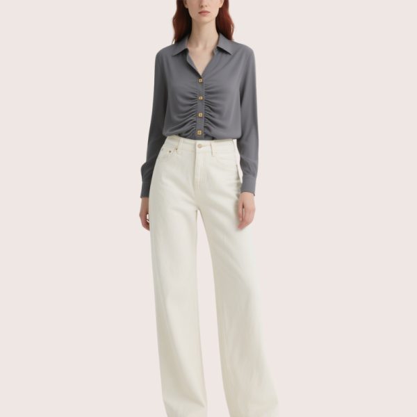 Smart Pleated Gold-Button Women’s Long-Sleeved Top