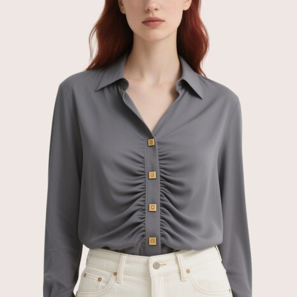 Be the first to review “Smart Pleated Gold-Button Women’s Long-Sleeved Top”