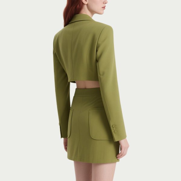 This sophisticated blazer and skirt set is crafted from 71% premium acetate, which is both eco-friendly and silky-soft. It’s easy to care for and as comfortable as traditional silk. This two-piece suit offers a cool, breathable feel, balancing sustainability with luxurious comfort.