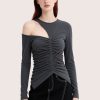 Stylish Pleated Off-the-Shoulder Women’s Long-Sleeved Top