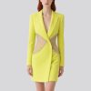 The dress hits just above the knee, revealing slender calves and visually lengthening the legs for a more elevated look.