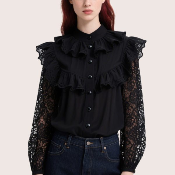 Vintage Ruffled Lace Women’s Long-Sleeved Top