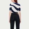 Wave Pattern Contrasting Pattern Short-Sleeved Top for Women