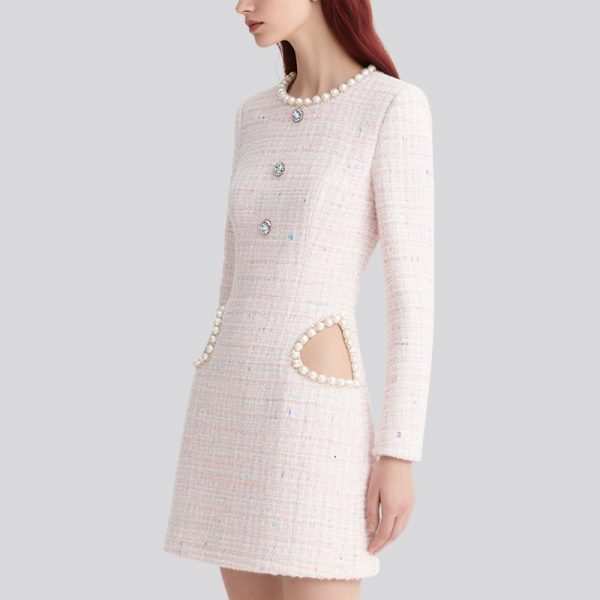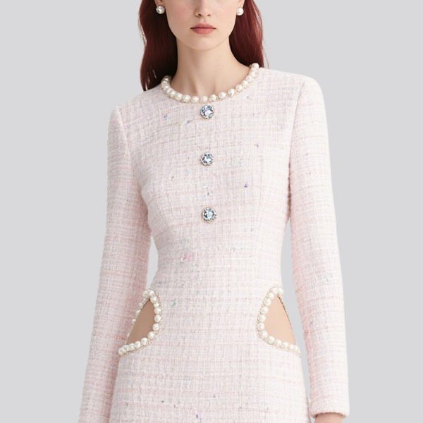 Women’s Chic Long-Sleeved Dress with Pearl Trim