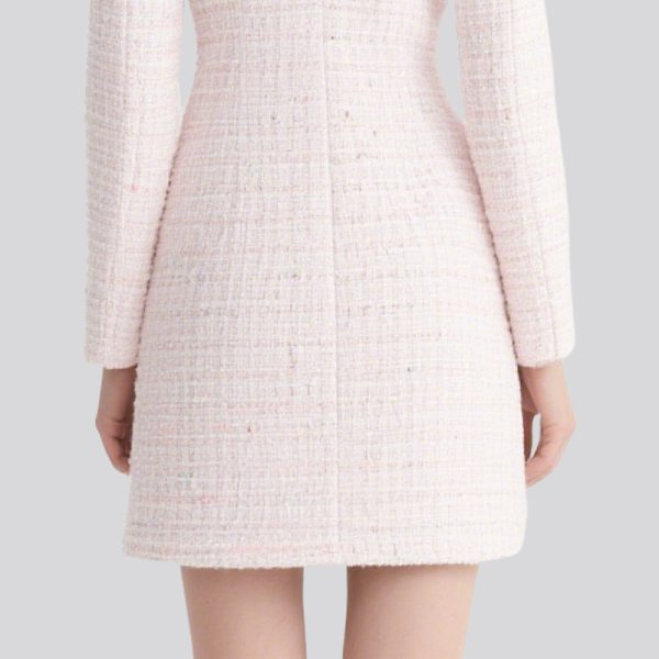 The dress hits just above the knee, revealing slender calves and visually lengthening the legs for a more elevated look.