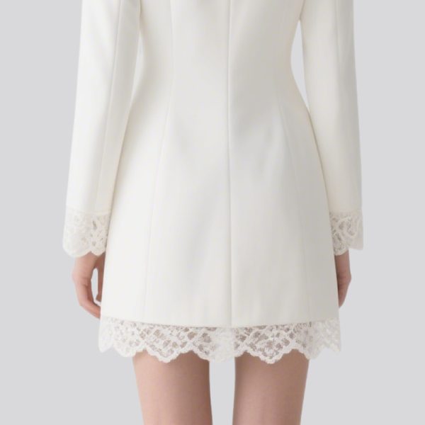 The dress hits just above the knee, revealing slender calves and visually lengthening the legs for a more elevated look.