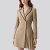 Women’s Exquisite Long-Sleeved Dress with Pleated Trim