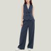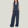 This versatile set can be worn on its own for a coordinated look or layered with other pieces in your wardrobe. The timeless style of this vest and pants set makes it a must-have for the fashion-forward woman.