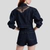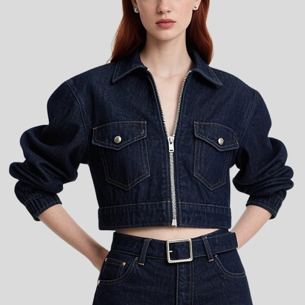 This women’s denim two-piece suit is made from 95% cotton and 5% polyester, a breathable, soft, and lightweight denim material perfect for summer wear.