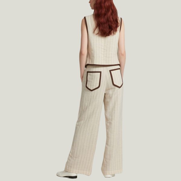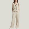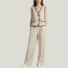 This versatile set can be worn on its own for a coordinated look or layered with other pieces in your wardrobe. The timeless style of this vest and pants set makes it a must-have for the fashion-forward woman.