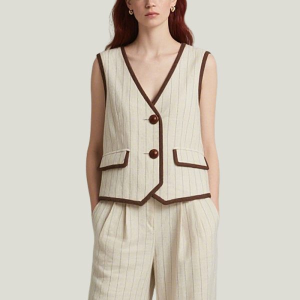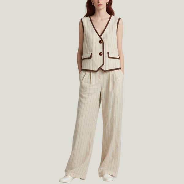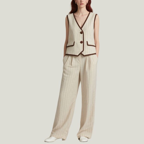 Elevate your summer wardrobe with this waistcoat and pants set, a perfect blend of style and sophistication. This summer two-piece outfit features a button-front blazer and wide-leg pants, perfect for both formal work and casual looks.