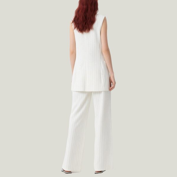 This versatile set can be worn on its own for a coordinated look or layered with other pieces in your wardrobe. The timeless style of this vest and pants set makes it a must-have for the fashion-forward woman.