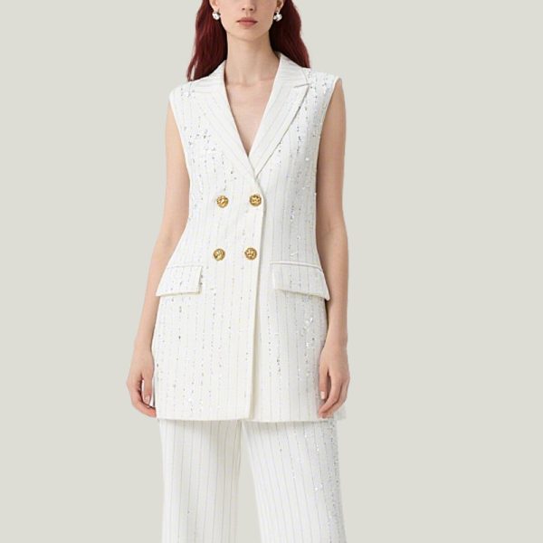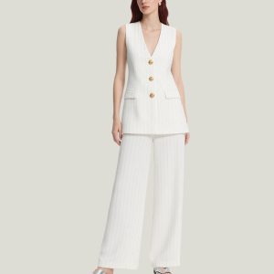 Elevate your summer wardrobe with this waistcoat and pants set, a perfect blend of style and sophistication. This summer two-piece outfit features a button-front blazer and wide-leg pants, perfect for both formal work and casual looks.