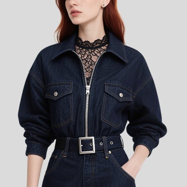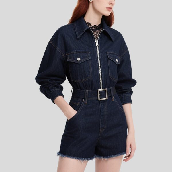This women’s denim two-piece suit is made from 95% cotton and 5% polyester, a breathable, soft, and lightweight denim material perfect for summer wear.