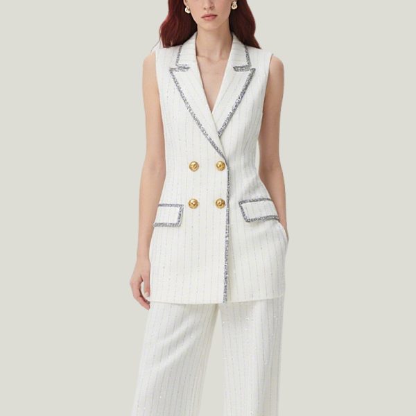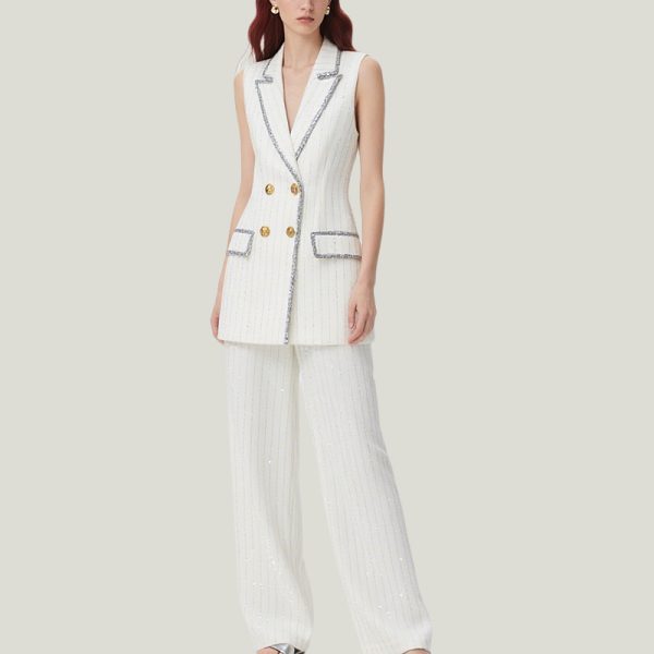 Elevate your summer wardrobe with this waistcoat and pants set, a perfect blend of style and sophistication. This summer two-piece outfit features a button-front blazer and wide-leg pants, perfect for both formal work and casual looks.