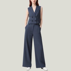 Crafted from premium fabrics, this women’s vest set is comfortable and durable, ensuring all-day elegance. The blazer features a slim fit, while the wide-leg pants add a touch of elegance to your outfit.