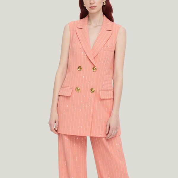 Elevate your summer wardrobe with this waistcoat and pants set, a perfect blend of style and sophistication. This summer two-piece outfit features a button-front blazer and wide-leg pants, perfect for both formal work and casual looks.